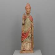 Polychroom beschilderd heiligenbeeld: Sulpitius de Vrome, Frankrijk, 18e eeuw -stuk staf en stuk vinger ontbreken-, hoogte 95 cm