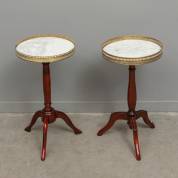Paar kleine gueridons met rond wit marmeren blad en messing galerij, 20e eeuw, 54 × Ø 28,5 cm