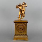 Verguld messing beeldpendule met voorstelling van liefdeskoppel, tweede helft 19e eeuw, 48,5 × 18 × 11 cm