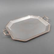 Achthoekig verzilverd dienblad met kabelrand, de grepen met rocaillemotief, uitvoering Christofle, Frankrijk -randen licht doorpoetst-, 57 × 40 cm