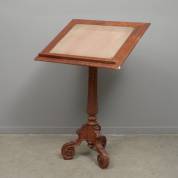 Notenhouten lessenaar met gesneden decor van cannelures en acanthusbladeren, staand op driespant, het blad ingelegd met groen vilt, 19e eeuw -vilt verkleurd en wat los, gebruikssporen-, 108 × 70 × 54