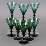 Vier groene en vier zeegroene kristallen parapluglazen,19e eeuw, -één groen glas met randchip-,12 cm