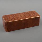 Palissandergefineerde handschoenendoos met bronzen bies op het deksel, uitvoering Tahan, Parijs, 19e eeuw -vochtplek onderaan de achterzijde, stukje fineer ontbreekt aan de achterzijde en onder het deksel-, 8 × 26 × 10,5 cm