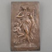 Jean-Baptiste Germain (1841-1910), bacchante en putto, gepatineerd bronzen reliëfplaquette, r.o. gesigneerd en gedateerd 1867, 33 × 20 cm