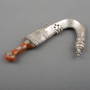 Jambiya-dolk met gekromd lemmet, in BWZG schede, Arabische wereld -deel van schede zit los-, 33 × 20 cm