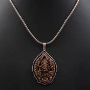 Koperen reliëfhanger met een voorstelling van Ganesha, in 1e gehalte zilveren montuur, aan BWZG collier, India, 20e eeuw, hanger 6,5 × 4,5 cm