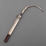 Noord-Sumatraanse dolk, Lapah Petawaran recht smeedijzeren lemmet, de zilveren overschede versierd met een zilveren band met cirkeldecor -defecten-, lemmet 17,5 cm