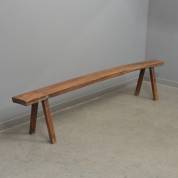 Lange eiken bank met schuine pootjes, Frankrijk, 19e eeuw, breedte 210 cm