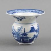 Chinees porseleinen kwispedoor met blauw-wit landschapsdecor, tweede helft 18e eeuw, 11 × Ø 13 cm
