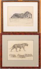 Daniël Herbert van der Poll (1877-1963), twee tekeningen: liggende tijger, en tijger met drie welpjes, houtskool op papier, beide r.o. gesigneerd -laatstgenoemde met roestvlekjes-, 22,5 × 30 cm