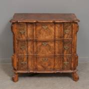 Notenhouten commode met orgelgebogen front, Holland, circa 1700 -gerestaureerd, droogtescheuren in blad en zijwanden-, 80 × 82 × 43 cm
