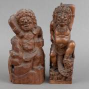 Twee Indonesische houtsnijwerken -het fijn gesneden beeldje met afgebroken teen-, 28 cm