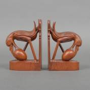 Paar gesneden houten boekensteunen in de vorm van vogels die een ei pakken, Bali, tweede kwart 20e eeuw, niet gesigneerd, 15,7 × 10,6 × 5,7 cm