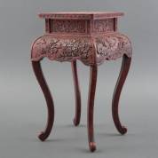 Chinees rood lak tafeltje met reliëfdecor van bloemen en planten, circa 1900 -gebruikssporen-, 43 × 25 × 25 cm, herkomst: particuliere verzameling Amsterdam