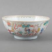 Chinees porseleinen famille rose kom met decor van vele figuren en vergulde rand, Qianlong -twee kleine randrestauraties-, 10 × Ø 23 cm