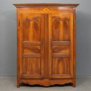 Notenhouten tweedeurs kast, het interieur met legplank en roede, vermoedelijk Duitsland of Alpenlanden, 19e eeuw -restauraties, waaronder dichtgestopte oude houtwormgaatjes-, 207 × 161 × 58 cm