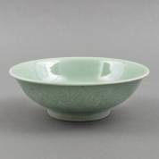 Chinese celadon kom met floraal decor aan buitenzijde, 19e/20e eeuw, 8 × Ø 23 cm