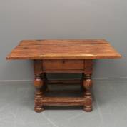 Betaaltafel met lade en opbergvak onder het verschuifbare blad, staand op balustervormige poten, opgebouwd uit diverse houtsoorten, 18e eeuw, 79 × 135 × 105 cm