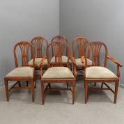 Zes notenhouten stoelen met losse kussens, twee met armleuningen, Louis Seize-stijl -enkele defecten-, 97 × 65 × 45 cm
