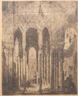 Marius Bauer (1867-1932), interieur van het paleis Alhambra met fontein, ets No. 3, r.o. gesigneerd, 57 × 46 cm