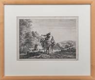 Nicolaes Berchem (1620-1683), de reiziger en de herders, ets, 19 × 24 cm