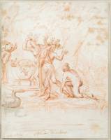 Europese School: 'Heliades in arbores', roodkrijttekening, l.o. gedateerd 1721, verso met label van kunsthandel Bernard Houthakker, Rokin 98, Amsterdam -vlekken-, 19,7 × 15,5 cm