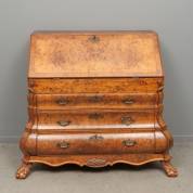 Notenhoutengefineerde klepsecretaire, Hollands, 18e eeuw -enkele defecten en ontbrekende stukjes profiel en fineer-, 112 × 126 × 65 cm