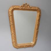 Facetgeslepen spiegel in taps toelopende vergulde lijst met bloemdecor, jaren '70, inclusief lijst 95 × 72 cm