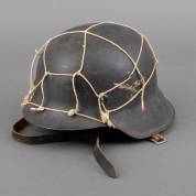 Duitse Luftwaffe helm, model M42, één decal, met originele draadbespanning voor camouflage, maat 55, buitenzijde 28 × 17 cm, herkomst: door vader van de inzender verkregen als lid van de Binnenlandse Strijdkrachten
