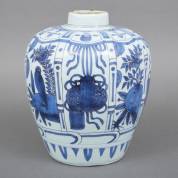 Delfts aardewerk pot met decor in Wanli-stijl, circa 1700 -deksel ontbreekt, kleine randdefecten-, 22 × Ø 18 cm