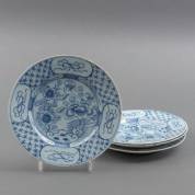 Serie van vier Delfts aardewerk borden met Chinoiseriedecor in Kangxi-stijl, niet gemerkt, 18e eeuw, Ø 23 cm