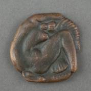 Fred Carasso (1899-1969), penning: Leda en de zwaan, gepatineerd brons, uitvoering Koninklijke Begeer, 1967, in opdracht van de Vereniging van Penningkunst -enige slijtage aan patinering-, Ø 5,5 cm
