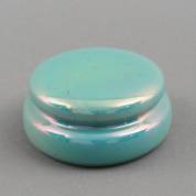 Keramiek dekseldoos met groen lusterglazuur, uitvoering St. Lukas, Utrecht, gemerkt 108 K, circa 1910 -deksel met barst-, Ø 13,5 cm