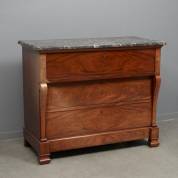 Mahoniegefineerde ladekast met schrijfcompartiment en zwart marmeren blad, biedermeier -een zijde verbleekt-, 102 × 125 × 57 cm