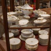 Porseleinen serviesgedeelte met gouden bies en deels met stervormig motief, deels gemerkt, 19e eeuw -gebruikssporen-
