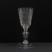 Gegraveerd wijnglas met decor van vruchten en bloemen, tweede helft 18e eeuw, hoogte 18,5 cm