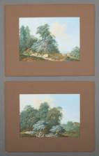 Paar miniatuurschilderijtjes: reizigers in landschap, gouache op papier, niet gesigneerd, één met verso opschrift 'Agricola', refererend aan Cristophe-Ludwig Agricola (1665-1724), vermoedelijk eind 18e eeuw -één met gefixeerd gaatje-, 12 × 16,5 cm