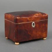 Schildpad theedoosje met binnendeksel, 19e eeuw -restauratie bij een scharnier-, 8 × 10 × 7 cm