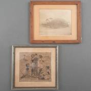 Rie Cramer (1887-1977), twee etsen: 'Verzoeking v.d. H.A.', niet gesigneerd, 10 × 10,5 cm, en dode mus, gesigneerd, 9,5 × 11 cm, beide herkomst: Collectie Louis Couturier