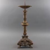Zware messing altaarkandelaar in neogotische stijl, staand op klauwpoten, 81 × Ø 28 cm