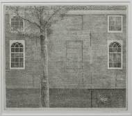 Charles Donker (1940), gebouw met boom, ets 1/150, r.o. gesigneerd, 23 × 28 cm