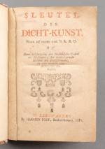 Boek: Sleutel der dicht-kunst naar de order van 't A.B.C. (van Abaris tot Zoroastres) of eene beschrying der heidensche goden en godinnen, der wydberoemde helden en kunstenaar en van andere verdichtzelen der Ouden. Leeuwarden, H. Post, 1780. (II) IV, 328 pp. Kl.8vo. Oorspr. kartonnage -licht gebruind-, 15 × 10 cm