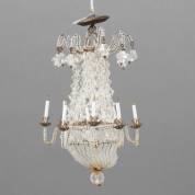 Miniatuur achtlichts kroonluchter met kristallen kralen, 19e/20e eeuw -beetje roest-, 12 cm hoog