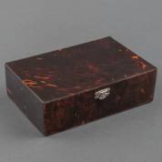 Rechthoekige schildpad dekseldoos met rood gestoffeerd interieur, begin 20e eeuw -lichte gebruikssporen-, 6 × 19 × 12,5 cm