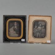 Twee daguerreotypieën: portret van Suzette Cruys-Trakranen en haar dochter Beatrix Cruys (geboren 4-11-1846), en portret van drie kinderen uit de familie Des Tombe, geboren rond 1840, beide foto's circa 1850 -laatstgenoemde met los glasplaatje-, beide 15 × 13 cm