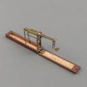 Uitklapbaar messing muntbalansje in mahonie doosje voor het wegen van een sovereign of half sovereign, met ingelijmde papieren gebruiksaanwijzing, adres: Stephen Houghton & Son, Ormskirk, 'successors to A. Wilkinson', circa 1820, ingeklapt 1,5 × 13,5 × 2,5 cm
