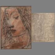 Willem van Konijnenburg (1868-1943), twee werken: vrouwenportret, krijt, l.o. gemonogrammeerd, 19,5 × 14 cm, en herberginterieur, potlood, l.o. gemonogrammeerd en gedateerd 1939, met op het passe-partout een opdracht 'Ter groote waardeering aan Louis Couturier' -waterschade aan passe-partout-, 11 × 9 cm