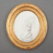 Ovaal miniatuurportret: Henriette Elisabeth de Waldkirch (1746-1797) en profil, aquarel en potlood op papier, 7,5 × 6 cm