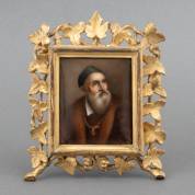 Beschilderde porseleinen plaquette: naar het zelfportret van Titiaan uit 1562 in de Galleria degli Uffizi, uitvoering Ginori, Florence, 9 × 8 cm, in verguld houten lijstje