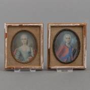 Twee portretminiaturen: Hertog Louis IV Henri de Bourbon, en mogelijk Elisabeth Frederika Sophia van Brandenburg-Bayreuth, beide r.m. gesigneerd met monogram AR, 18e/19e eeuw, 8 × 6 cm
